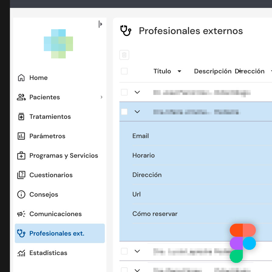 de pacientes, realizada en Figma.